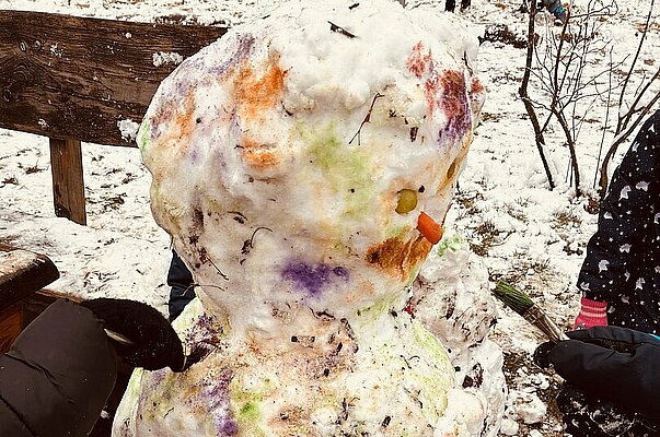 Winterliches Kunstprojekt: KiTa-Kinder gestalten bunten Schneemann