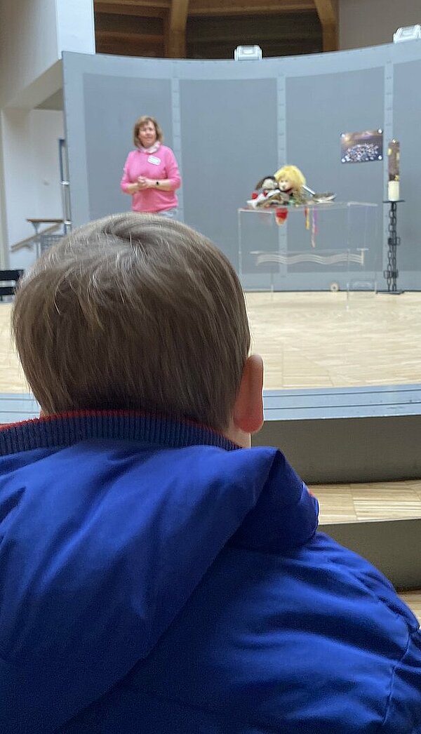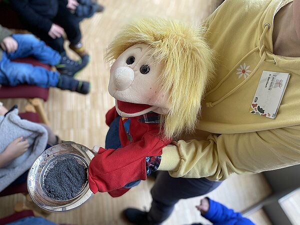 Noch am Vortag hatten die Kinder als Polizist*innen, Superheld*innen oder in fantasievollen Tierkostümen getanzt und gelacht. Nun sitzen rund 70 Kinder gemeinsam mit dem KiTa‑Team und Gemeindereferentin Gertrude Knepper in ruhiger Atmosphäre zusammen. Keine Musik, keine Kostüme – und selbst die Handpuppe Merle wundert sich: „Warum ist denn heute keiner im Kostüm, warum ruft ihr nicht mehr Helau, was ist hier los?“