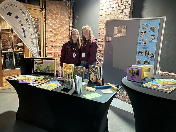 Im Zentrum der Veranstaltung stand der direkte Austausch zwischen Trägern, Auszubildenden und jungen Menschen, die sich für eine Tätigkeit im pädagogischen Bereich interessieren. Die PiA‑Auszubildenden Vanessa Piwkowski und Hanna Kreter aus der KiTa Liebfrauen des KiTa Zweckverbandes nutzten die Gelegenheit, um mit Schüler*innengruppen ins Gespräch zu kommen und aus erster Hand von ihrer Ausbildung und den Erfahrungen in den Einrichtungen zu berichten. Die Fachberaterinnen Sonja Granz und Nicole Back zeigten unter anderem, wie religionspädagogische Arbeit in den KiTas gelebt wird und nutzen die Gelegenheit, um (religions-)pädagogische Fragen zu beantworten.