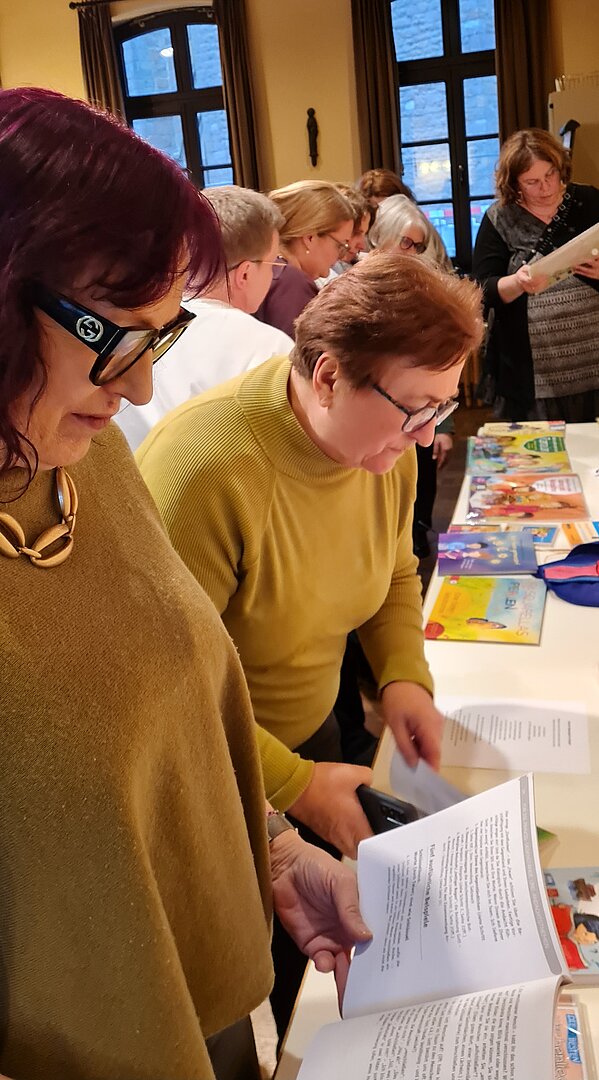 Ein Bestandteil des Treffens ist die Vorstellung religionspädagogischer Methoden und Fortbildungen. In diesem Jahr präsentierten Kolleginnen die Ausbildung zur/zum „Bibelerzähler*in“, die auf großes Interesse stieß. Die Weiterbildung ist eine erzähldidaktische Ausbildung, die dazu befähigt, biblische Geschichten frei, lebendig und berührend zu erzählen. Sie wird bundesweit von kirchlichen Einrichtungen angeboten und richtet sich an Menschen, die in Gemeinde, Pädagogik oder Seelsorge tätig sind oder dort wirken möchten.