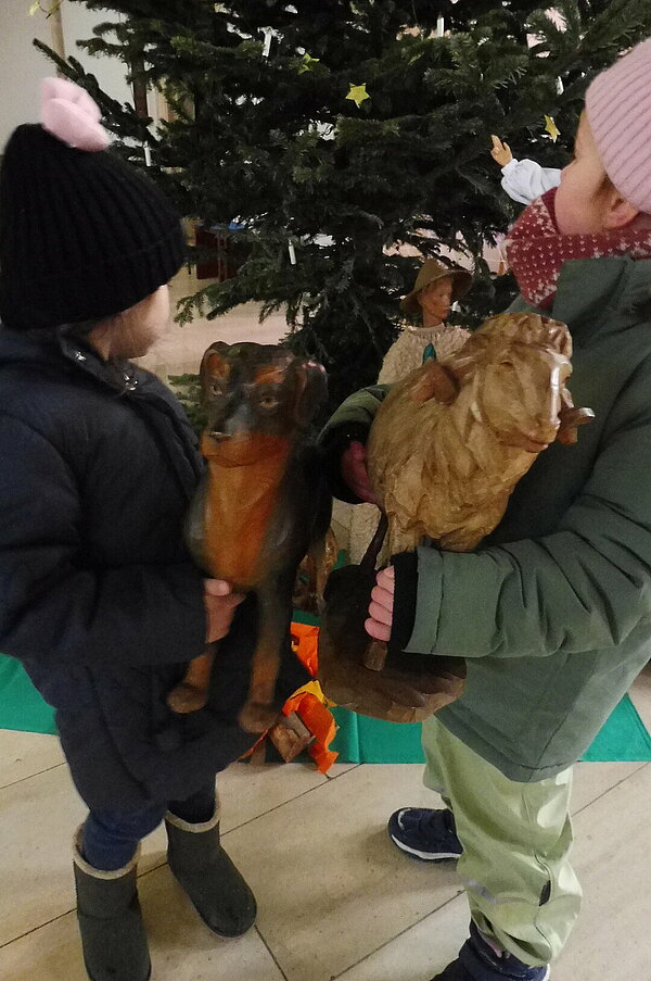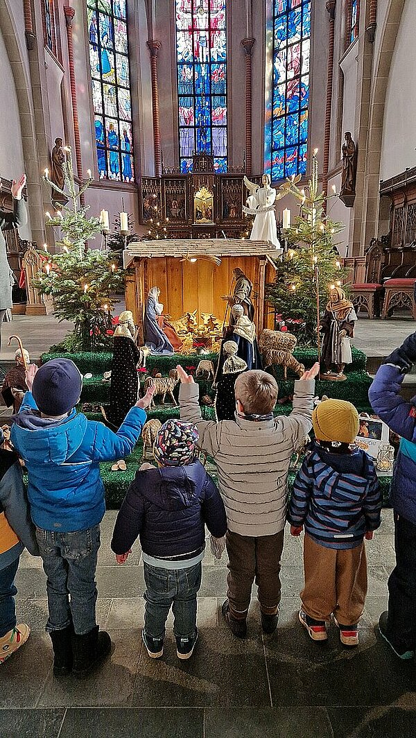 Zum Abschluss besuchte die Gruppe die Krippe in der benachbarten Kirche St. Bonifatius. Dort betrachteten die Kinder die Figuren der drei Könige und erhielten die Möglichkeit, eigene Gedanken, Bitten oder Dank vor dem Kind in der Krippe auszudrücken.