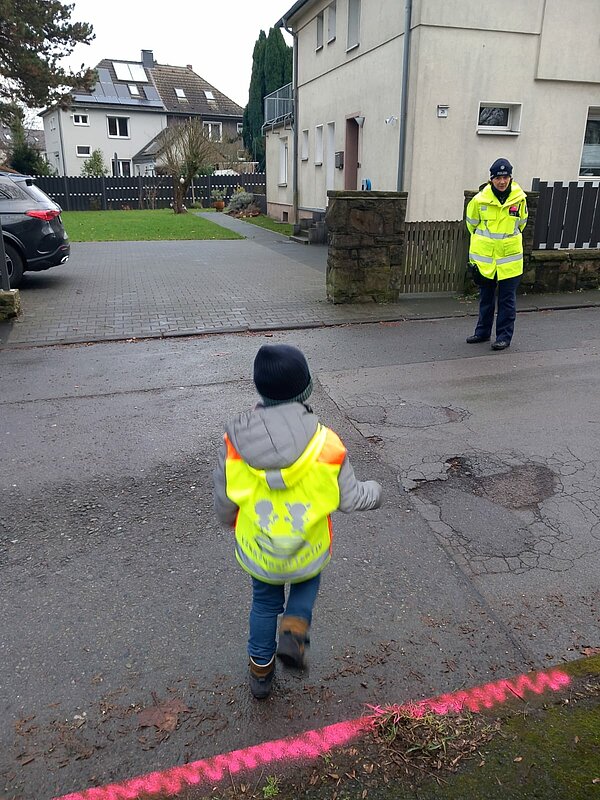Wie komme ich sicher über die Straße? Mit dieser Frage beschäftigen sich die Vorschulkinder der KiTa St. Franziskus in Bochum. Zur Vorbereitung auf ihren bevorstehenden Schulweg lernen die Kinder gemeinsam mit KiTa-Mitarbeiter*innen und der Polizei, wie man sich als Fußgänger*in richtig verhält.
