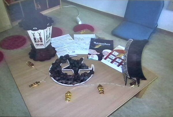 Zunächst betrachteten die Kinder verschiedene muslimische Symbole und erfuhren mehr über ihre Bedeutung. Dazu gehörte zum Beispiel der Halbmond, der eine zentrale Rolle im islamischen Jahr spielt. Bei dem Impuls lernten die Kinder auch mehr über die Gemeinsamkeiten von Islam und Christentum: Viele Rituale, Feste und Prinzipien sind in beiden Religionen ähnlich, wie etwa das Fasten oder das Schmücken von Häusern zu besonderen Feiertagen. Anschließend konnten die Kinder das traditionelle Fastenbrechen im Ramadan nachempfinden: Sie aßen zusammen Datteln und tranken Wasser.