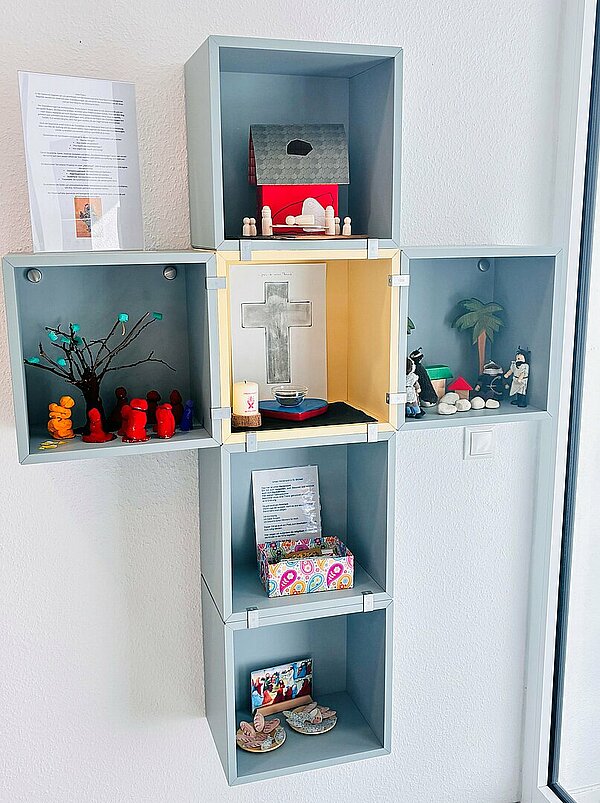 Am Herzensort der KiTa werden die besprochenen Szenen aus den Geschichten gemeinsam gestaltet und für Kinder und KiTa-Familien sichtbar gemacht. So erleben die Kinder die Fastenzeit als eine Zeit des gemeinsamen Nachdenkens, des Staunens und der Hoffnung.