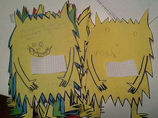 Im Rahmen des Qualitätsmanagements wurde das bestehende Beschwerdeverfahren überprüft und weiterentwickelt. Dabei entstand der Entschluss, die Farbmonster als zentrales Element zu nutzen. Drei Farbmonster wurden eingeführt: weiß, gelb, grün, rot, blau und schwarz. Für Anliegen, die die Kinder äußern möchten, wählen sie künftig die passende Farbkarte aus und werfen diese in einen Briefkasten. Auf dem weißen Monster können Wünsche für den Kita-Alltag gemalt oder – mit Unterstützung des Teams – schriftlich festgehalten werden. Auf gelbe Monster kommt alles, was den Kindern Freude bereitet, auf das Grüne, alles zum Thema Gelassenheit.