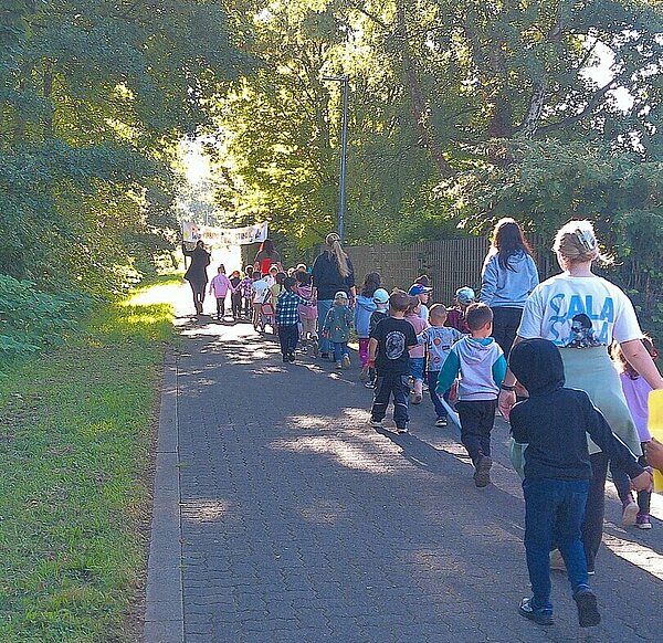 Mit selbstgestalteten Bannern und Plakaten zogen die Kinder über den Plettenberger Lennedamm und riefen dabei kraftvoll: „Wir haben eine Stimme!“ und „Ohren auf für Kinderrechte!“. Die Plakate, wurden im Vorfeld von den Kindern selbst gestaltet und zeigten eindrucksvoll, dass sie in der KiTa mitentscheiden: Bei der Wahl von Speisen, Spielen aber auch in der Gestaltung, Planung und Umsetzung von Tagesabläufen, Aktionen und Projektwochen.