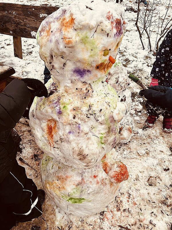 Am Ende entstand so ein farbenfroher Schneemann, der zeigt, dass Kreativität keine Farben oder Regeln kennt.