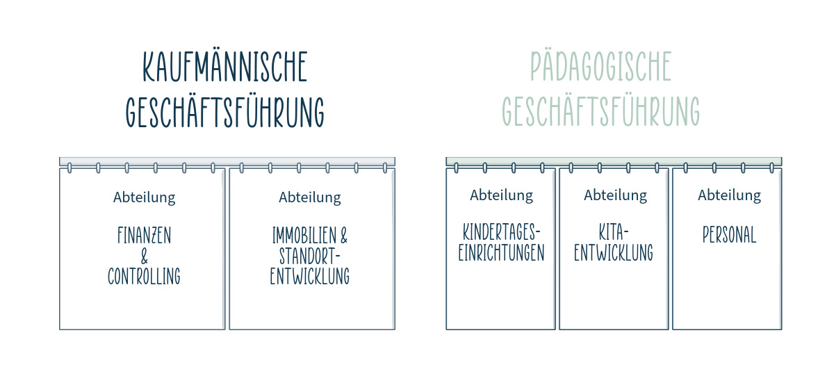 Die pädagogische Geschäftsführerin Verena kleine Holthaus ist gemeinsam mit den Gebietsleitungen für die Trägerprozesse, also für die Kindertageseinrichtungen, verantwortlich. Mit den Leitungen der Abteilungen KiTa-Entwicklung, Personalentwicklung und Personalmanagement verantwortet sie außerdem die sogenannten Fachprozesse.